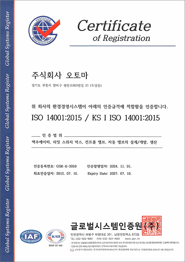[인증서] ISO 14001:2015 / KS I ISO 14001:2015(인증만료:2027.07.10)