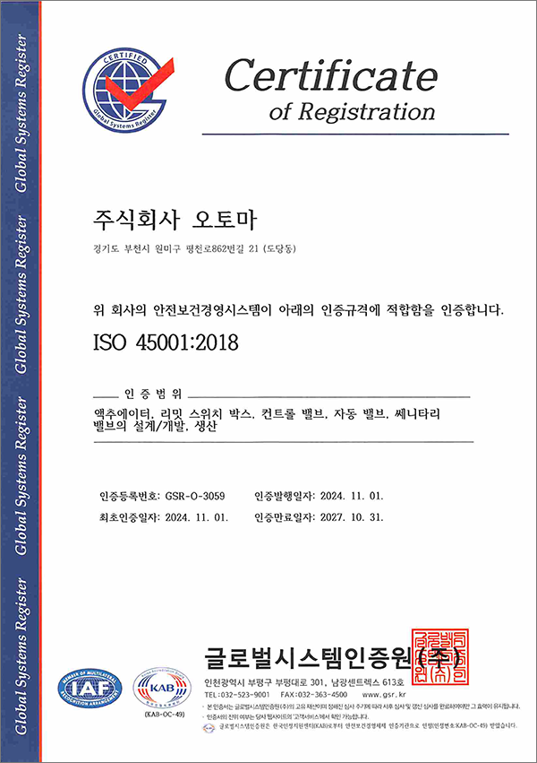 [인증서] ISO 45001:2018 (인증만료:2027.10.31)