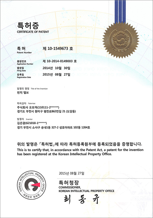 [특허] 펀치밸브 특허증